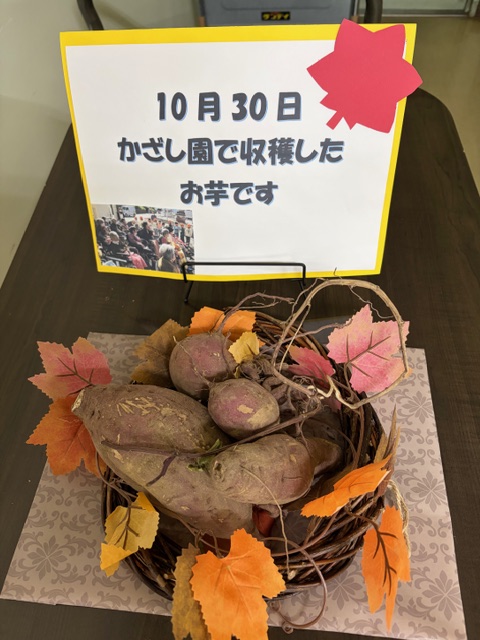 先日、ご利用者と近隣の保育園児で、さつま芋収穫をしました。