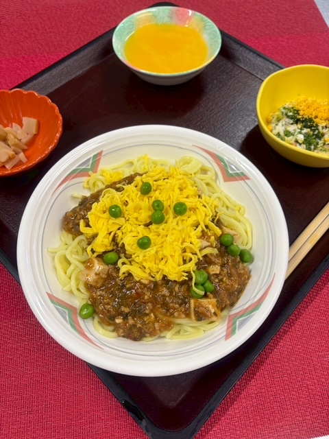 かざし園では、辛味は抑えてマイルドな味付けにし、麺も柔らかめに茹でてごま油をまぶし食べやすくアレンジし、