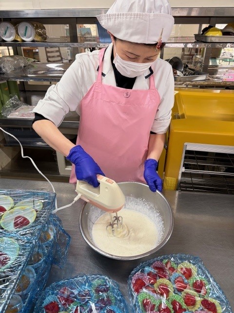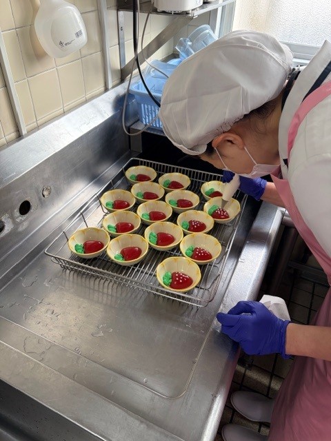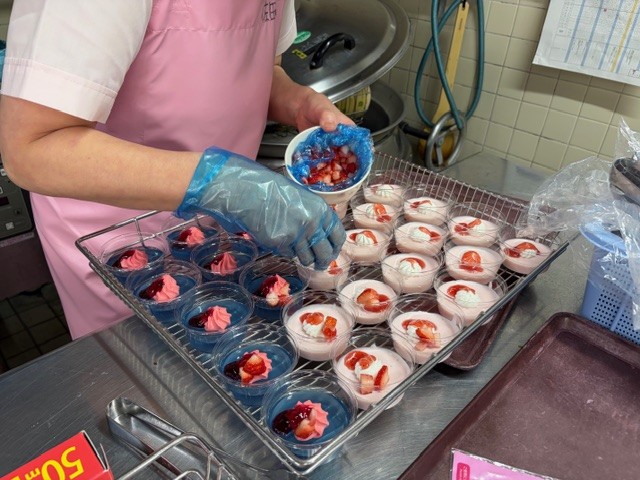 調理員も、朝からデザート作りに大忙しでしたが、華やかなデザートがどんどん作り出されていき