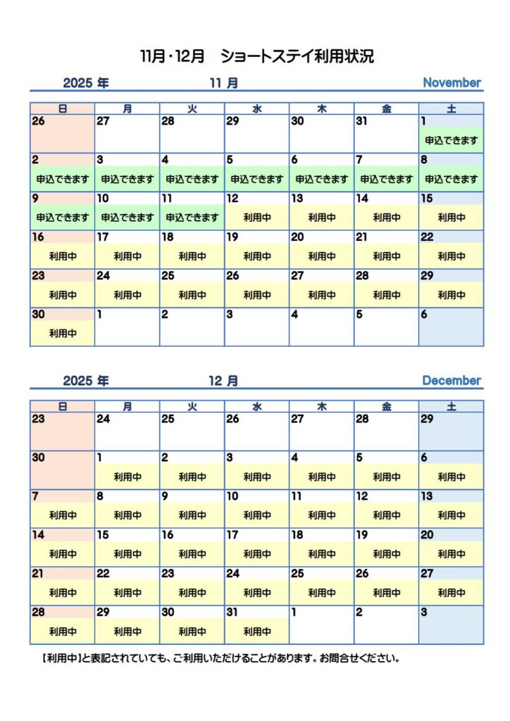 11月・12月ショートステイ利用状況